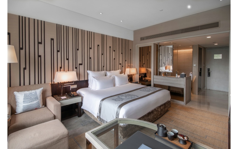 The Presidential Suite is located on the 21st floor and is the most luxurious room in the hotel. With a tall living room and excellent panoramic views, the dining room and study are connected, and the decoration is elegant and noble. The grand master bedroom and spacious bathroom make it even more luxurious and comfortable. Climbing up to the rooftop garden, you can enjoy the beautiful mountains and green waters, as well as the city view of Yaocheng.