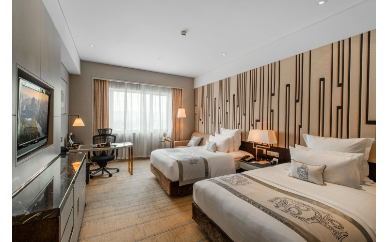 景观商务房:面积30平方米景观商务房位于6-9楼,可俯瞰姚江美景和龙泉山风光,装潢现代时尚,室内环境宽敞舒适。