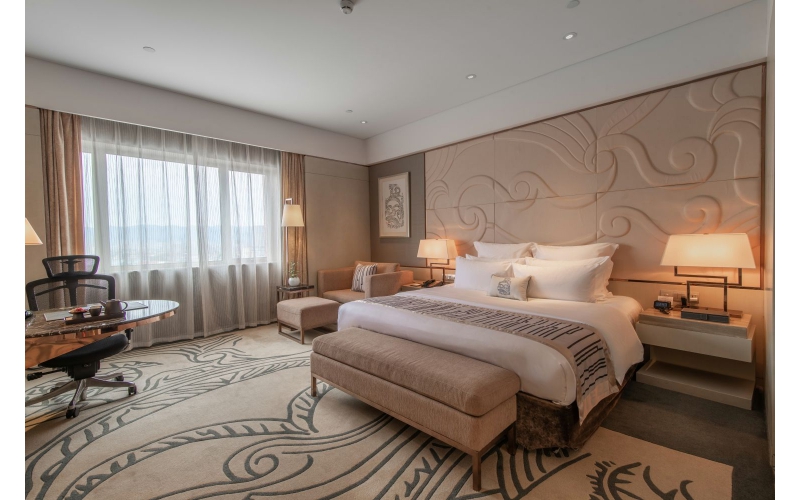 商务房位于6-9楼,三十平方米的舒适客房内,采用传统中式优雅与现代奢华相结合的设计,宽敞舒适,装潢现代时尚,为您提供惬意自在的入住环境。