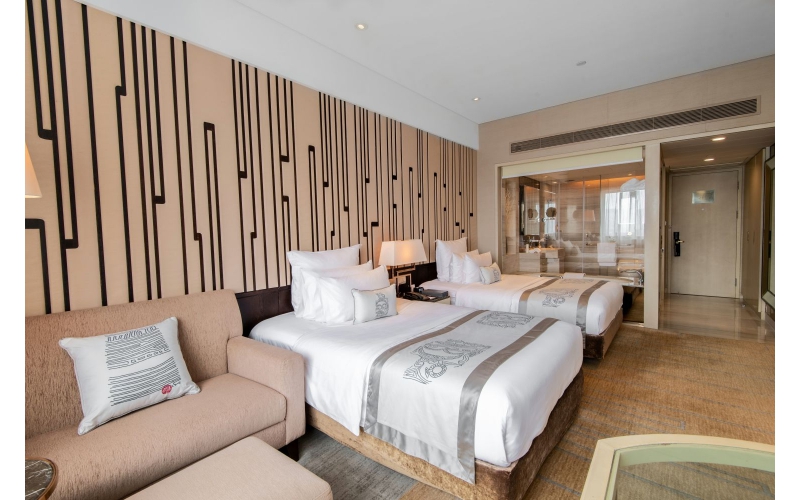 Business Room: The 30 square meter business room is located on the 6th to 9th floors. The comfortable 30 square meter room combines traditional Chinese elegance with modern luxury, providing a spacious and comfortable living environment with modern and fashionable decoration.